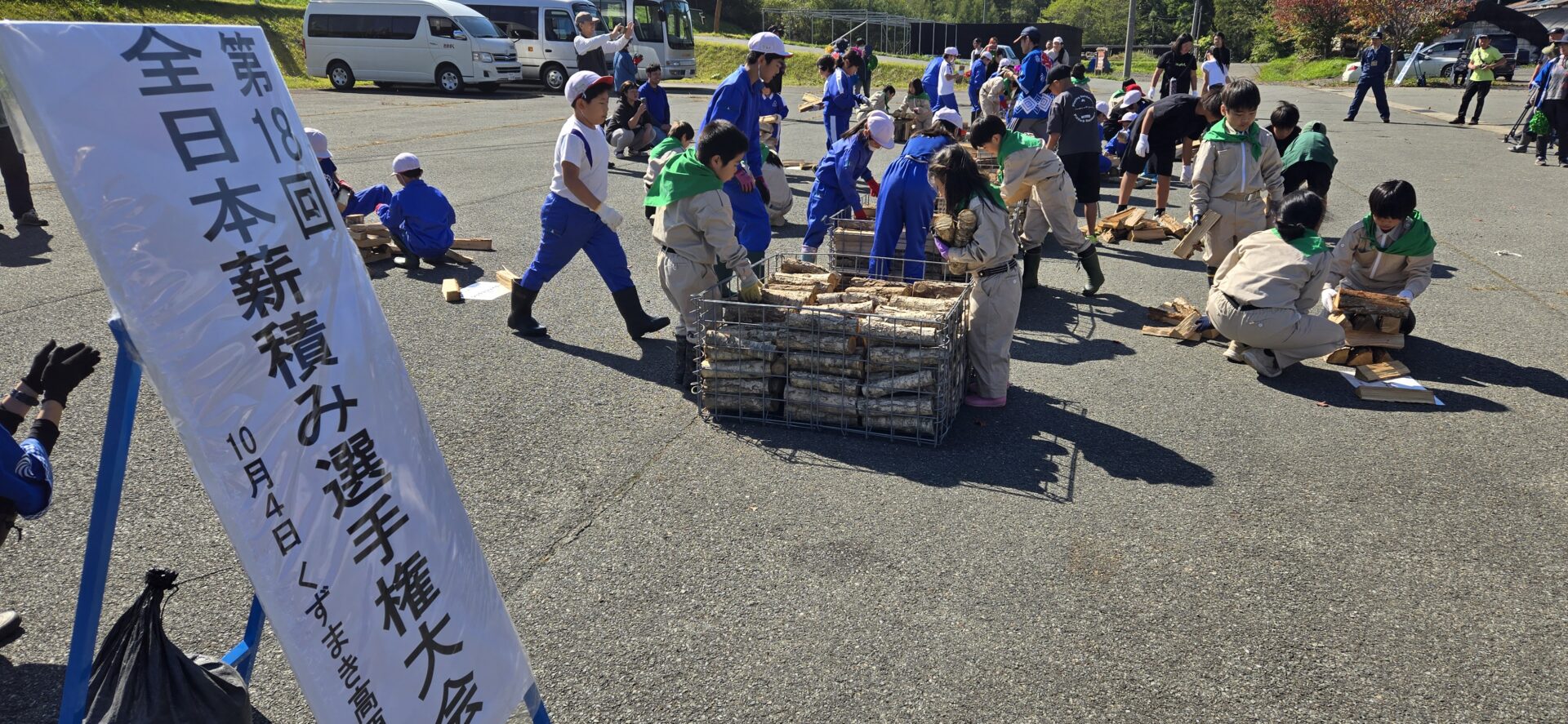 崩れそうで崩れない積み上げた薪に、会場から思わず歓声が上がります。遊びのようでいて、安全と効率の要点がぎゅっと詰まっています。