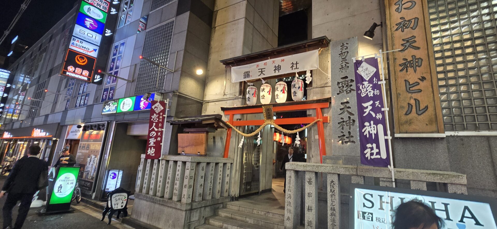 夕食を兼ねた打合せのあと、ホテルに戻る途中のビルの谷間にひっそりと佇む小さな神社を見つけました。