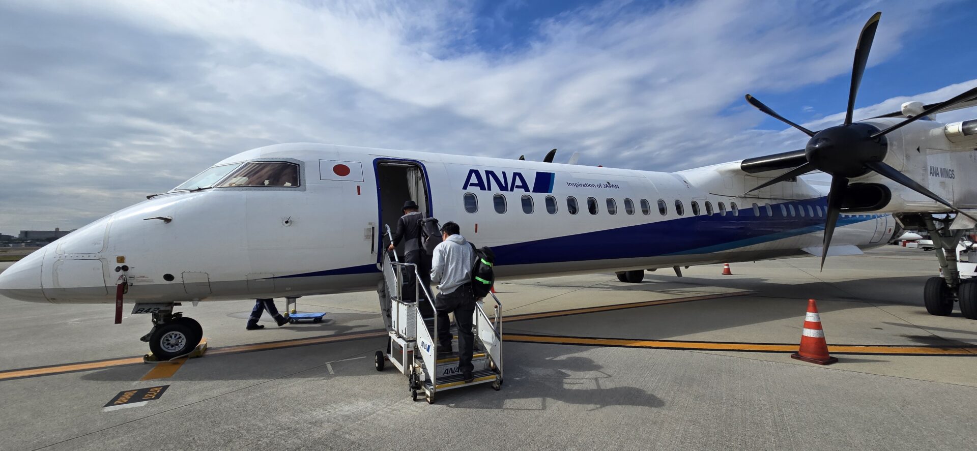 大阪から秋田へは、小さめのプロペラ機での移動でした。