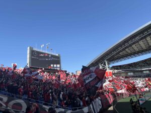 相手が鹿島ということもあって、多くのサポーターがスタジアムに集まり、試合前からすごい熱気でした!