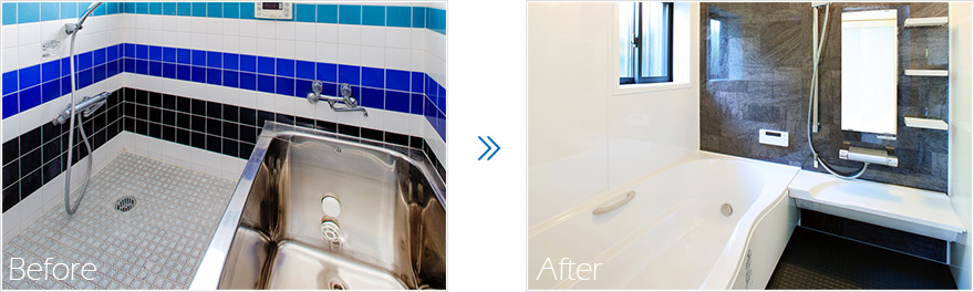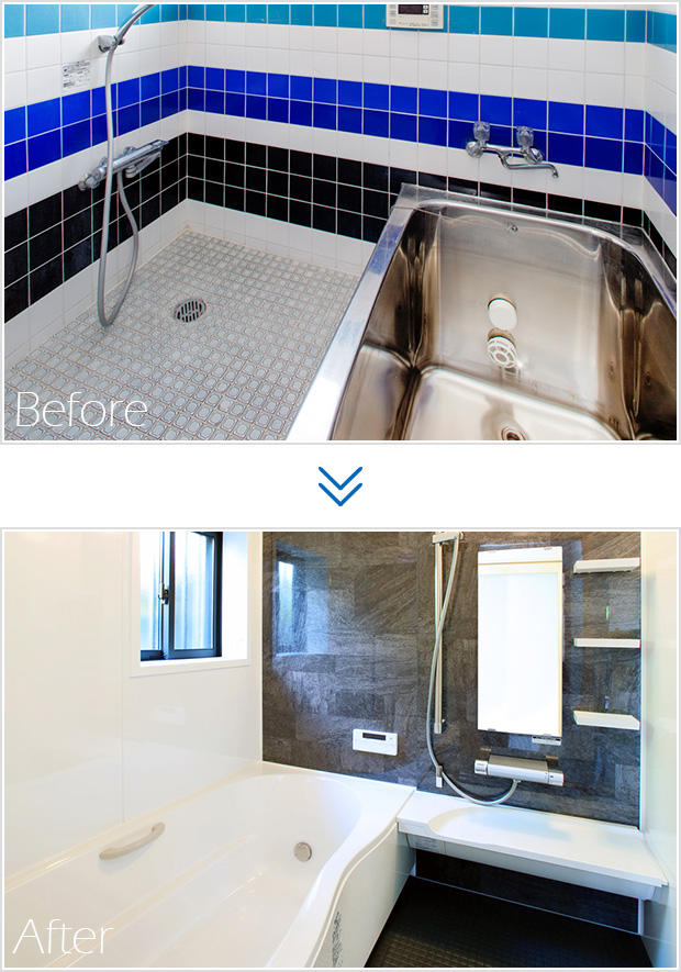 システムバスに交換して全面リフォーム。明るい印象のバスルームになりました。