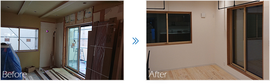 工夫も凝らした結果、まるで新築の様に素敵で快適なお住まいになりました。